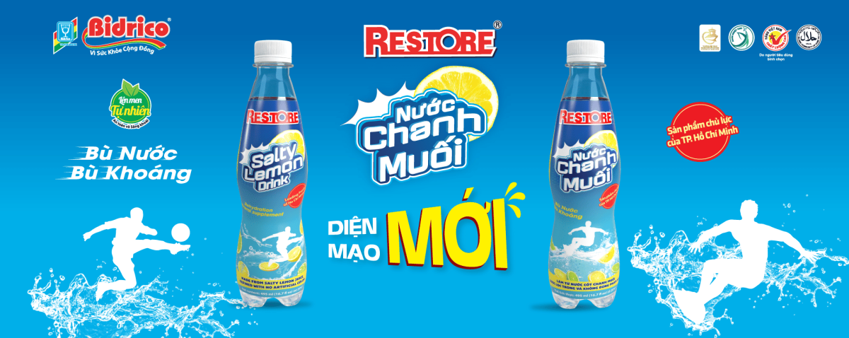 Sự thay đổi lần này, chanh muối Restore mang diện mạo màu xanh dương mát mẻ kết hợp sắc vàng tươi cá tính, thể hiện phong cách thể thao năng động, trẻ khoẻ, mạnh mẽ hơn, đột phá đơn. Đây cũng là cách Bidrico thể hiện quyết tâm cải tiến để nâng cao chất lượng sản phẩm và dịch vụ, hướng tới sự thân thiện, hiện đại, đồng thời khuyến khích mọi người hướng tới lối sống năng động, khoẻ mạnh, cân bằng giữa các hoạt động thể thao và dinh dưỡng.