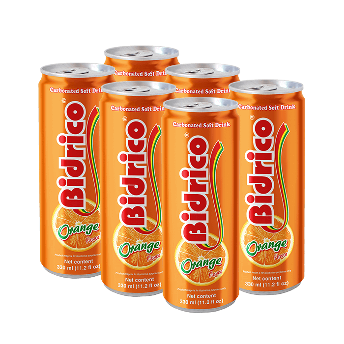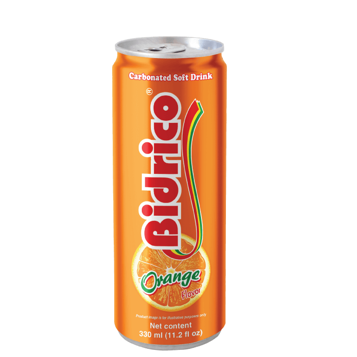 Other Bidrico carbonated soft drinks 330ml can:: Orange, cream soda, cola, sarsi.