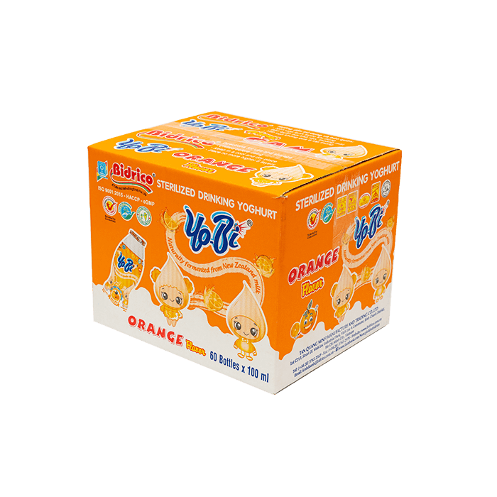 ContactYobi sterilized drink yoghurt orange flavor is a nutritious product with a blend of sweet and sour taste from orange extract and the fatty aroma of pure milk powder. The product is manufactured on modern European lines and technology, completely closed and automatic.