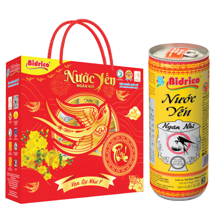 Liên hệNước yến ngân nhĩ hộp xuân Bidrico: Với tông màu đỏ ấm áp kết hợp sự tinh tế trên từng đường nét, tô điểm cho đàn chim yến bay lượn báo hiệu sự sum họp và gắn kết cho mùa xuân mới. Sản phẩm có nguồn gốc từ thiên nhiên giúp bồi bổ và tăng cường sức khoẻ. Là sản phẩm cao cấp của BIDRICO sản phẩm đạt tiêu chuẩn FDA – FCE – SID, xuất khẩu sang Hoa Kỳ Được sản xuất trên dây chuyền hiện đại của Châu Âu.